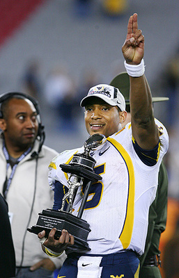 Pat White poses with the Fiesta Bowl Offensive MVP Trophy